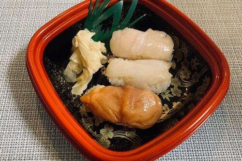 栄えある第1位は、貝づくしで154kcal。ホタテや赤貝など、人気の貝が3貫セットになった貝好きにはたまらない逸品。TOP1、2は、これをベースにお好み寿司をオーダーして、自分だけの1人前を作るのもいいだろう。