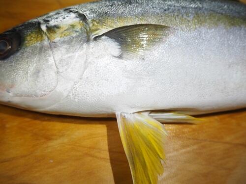 - 胸ビレ・腹ビレ・カマ(頭)を切り落とす