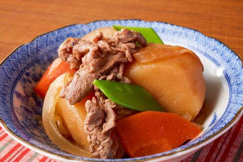 牛切り落とし肉は肉の形を整える際、残った部分を集めたものだ。安価だがヒレやロースのような高価な部分が入っている場合もあり、お得なこともある。とくに家庭料理の定番である肉じゃがに使うのがおすすめ。ほくほくとしたじゃがいもに肉の旨みと甘辛い味がなじんで、ごはんが何杯でも食べたくなる美味しさだ。また薄切り肉をクルクルと巻いてボリュームアップすれば立派なステーキ風に。ほかに牛肉の代表的なメニューであるすき焼きや、冷えた身体がほっこり温まるポトフもおすすめ料理のひとつ。