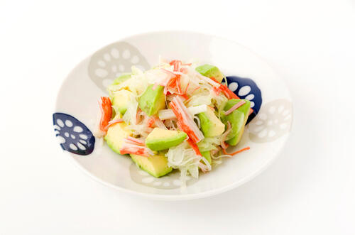 ほぐしたカニカマと好きな食材を、調味料と一緒に混ぜる。シンプルだが食材や味の組み合わせが豊富で、さまざまな楽しみ方ができる。おつまみ向きにするなら、たとえばねぎやしそなどの薬味、マヨネーズやしょうゆなどの味がはっきりした調味料を使うのがよいだろう。もちろん、淡い味に仕上げて日本酒などとゆっくり味わうのもおすすめだ。
