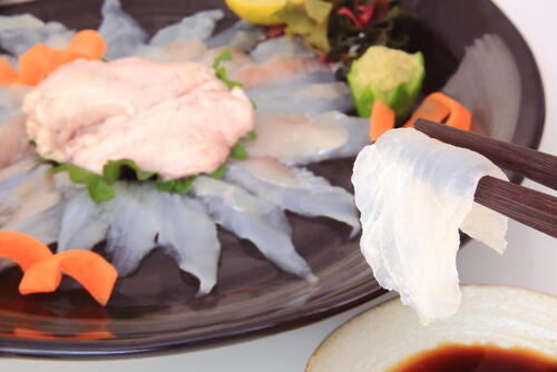 刺身で食べる場合は、さらにかわはぎの薄皮をむく必要がある。薄皮をむく場合は、中心の小骨の脇から包丁を入れ、薄皮に歯を当てないように斜めに包丁を移動させよう。身は食べやすいように薄切りにする。肝は裏ごし器でこし、ポン酢や醤油と和えれば肝醤油の完成だ。刺身と一緒に食べると絶品なのでぜひ試してみよう。
