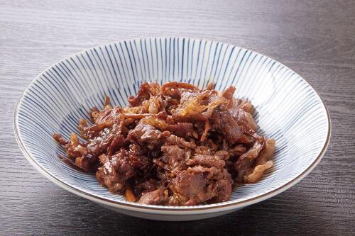 調味料と水を鍋に入れて煮詰めていく。ほどよく煮詰まったところで牛肉としょうがを加え、引き続き煮詰めていく。煮汁がほとんどなくなれば完成だ。粗熱を取ってから容器に移そう。