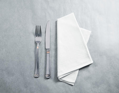 料理を注文した後、もしくはドリンクを注いでもらった後にナプキンを手に取り、二つ折りにしてひざにかける。ナプキンで口元をぬぐう場合は、ナプキンの端を持ち上げて、中面でぬぐうのがフランス料理のマナーだ。手をぬぐう際はひざ先からナプキンを1枚だけめくって内側で手を拭くようにしよう。