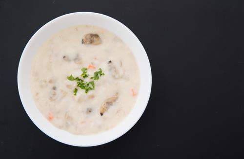 ミートソースを使用した料理におすすめのスープのひとつが、牛乳で作るクラムチャウダーだ。あさり・じゃがいも・玉ねぎ・にんじん・ブロッコリーなど、ミートソースで足りない栄養を補えるうえ、色のバランスもよい。あさりには鉄が多く含まれており、牛乳のカルシウムとともに、不足しがちな栄養を摂れる。あわせて鉄の吸収を助けるビタミンCを含むじゃがいもとブロッコリー入りなのも、献立におすすめのポイントのひとつ。