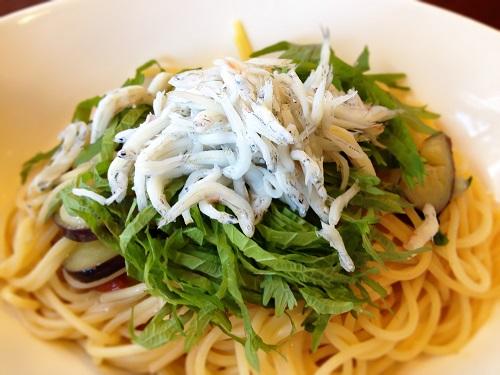 野沢菜としらすの和風パスタ