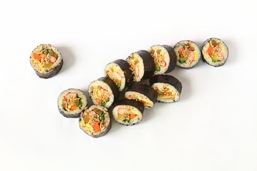 次にプルコギを具材として巻くアレンジのり巻きを紹介しよう。味がしみた牛肉と玉子焼き・にんじん・きゅうりを巻いたプルコギのり巻きはボリュームたっぷり。切り口の見た目が華やかで食欲をそそり、記念日やおもてなしにもおすすめだ。今回は完成したプルコギを使用してのり巻きを作る方法を紹介する。