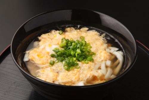 卵を容器に割り入れ、溶きほぐしてこしておく。鍋に湯を沸かしてうどんを入れ、表記時間通りに茹でて水気を切る。鍋にめんつゆと水、おろししょうがを入れて混ぜ、1〜2分ほど加熱して水溶き片栗粉を加えてとろみをつける。沸騰したら溶き卵を入れて混ぜる。コツは、ふんわりとなめらかにするため、溶き卵を2~3回に分けて加えること。汁をかき混ぜてから箸に沿わせて溶き卵を流すと、きれいなかきたまになる。