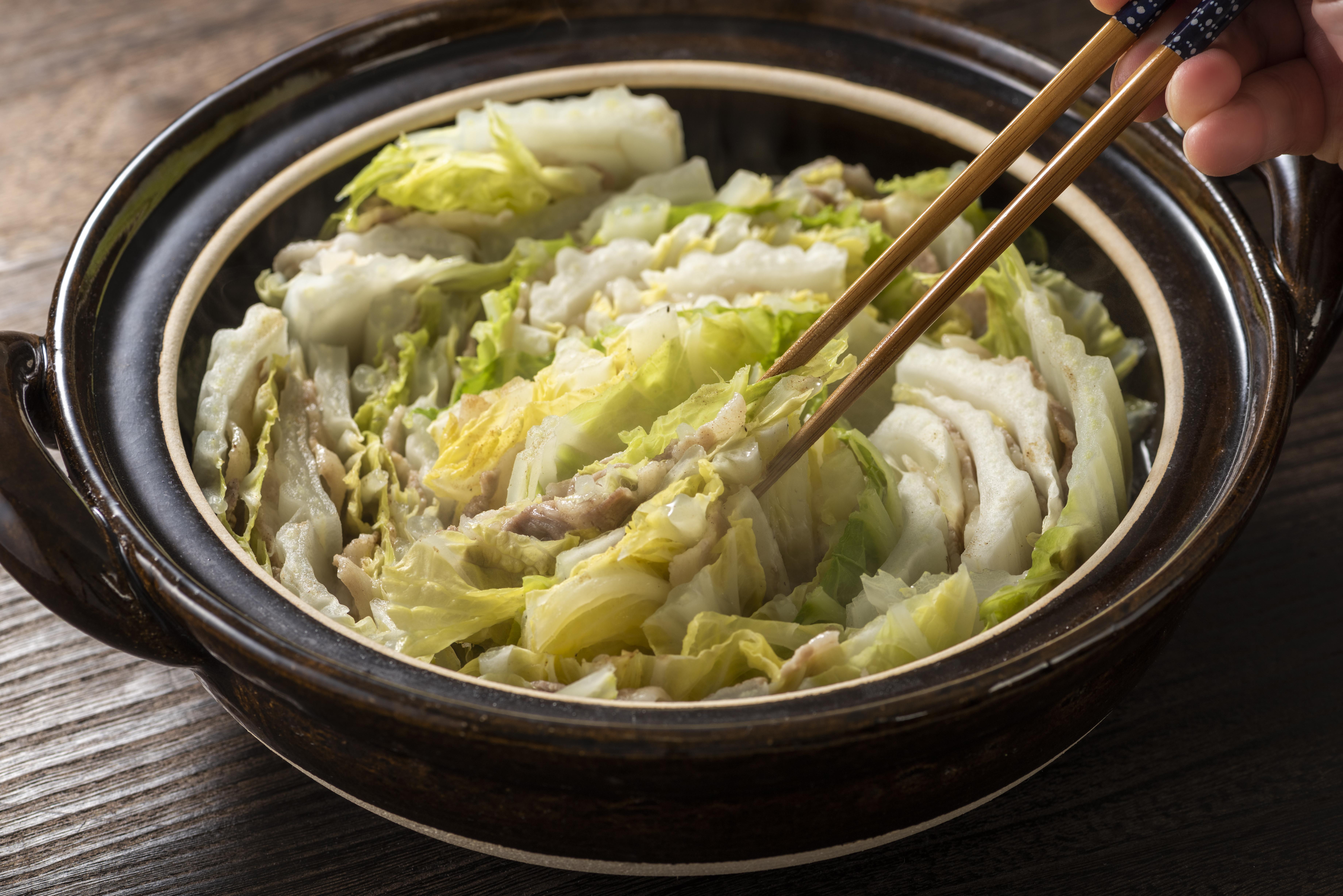 白菜とひき肉を使ったミルフィーユ状の料理は、白菜とひき肉を何層にも重ねて火にかけるので、白菜から出る水分とひき肉のジューシーな肉汁がマッチして、互いの旨みを引き出す。ここでは、ミルフィーユ状の料理を2つ紹介しよう。