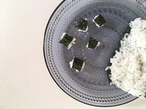 赤ちゃん用おにぎらずの作り方を説明しよう。まず海苔にごはんをのせ、さらに上から海苔を重ねて、海苔とごはんがなじむまで待つ。キッチンばさみで食べやすい大きさにカットすれば、もう赤ちゃん用おにぎらずの完成だ。作り方は驚くほど簡単だが、のどに海苔が詰まる危険も軽減できる調理法なので、ぜひ試してみてほしい。