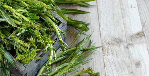 シャキシャキとした食感と独特の苦みが特徴で、サラダなど生で食べることが多い。アクが強いため、水にさらすなどしてアク抜きをするのがおすすめ。中が空洞なのも特徴で、空洞部分に詰め物をして揚げるなどしても美味しく食べられる。
