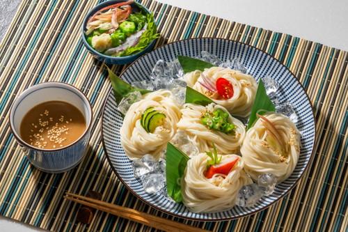 ひやむぎのほうが食べごたえもあるため、温かいつゆにあわせて食べるのもおすすめ。また、少し太めのひやむぎであれば、細いパスタ「カッペリーニ」の代用として使ってもよい。硬めに茹でたひやむぎを冷たいパスタソースに絡め、冷製パスタ風のひやむぎを作ってみよう。そうめんは細麺で食べやすく、あっさりとした味わいが特徴。シンプルにめんつゆで食べるのはもちろん、夏野菜を加えた旨みたっぷりの冷たいつゆに付けても美味しい。