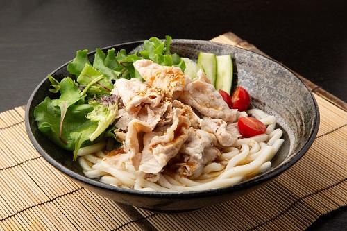 次に豚しゃぶと薬味をたっぷりのせた、食べるラー油の冷たいうどんを紹介しよう。豚しゃぶを加えるとボリュームたっぷりで、がっつり食べたい日の食事にぴったりの一品だ。ここでは冷凍うどんを使用して作る方法を紹介しよう。用意するのは冷凍うどん・しゃぶしゃぶ用の豚バラ肉・大根・みょうが・水菜・かいわれ・きゅうり・トマト・食べるラー油・めんつゆだ。