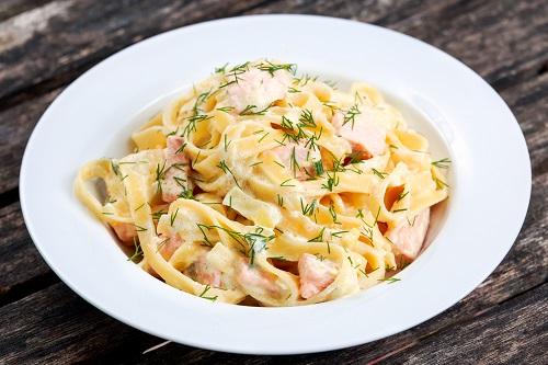 4. ほんのり香るレモンがさわやか!鮭の生クリームパスタ