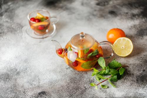 カットした生のフルーツを茶葉と一緒にポットに入れて蒸らし、フルーツや砂糖を入れておいたカップに注げば、さわやかな酸味と甘みのあるフルーツティーができあがる。旬のフルーツを使っていろいろな種類の味を作るのもよいだろう。