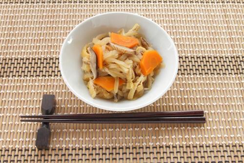 和食の煮物は醤油の色が目立ち、彩りが単調になりやすい。人参を使用すると鮮やかで見た目もおいしそうに仕上がる。大きさは切り干し大根と同じく千切りにして使うのがポイントだ。