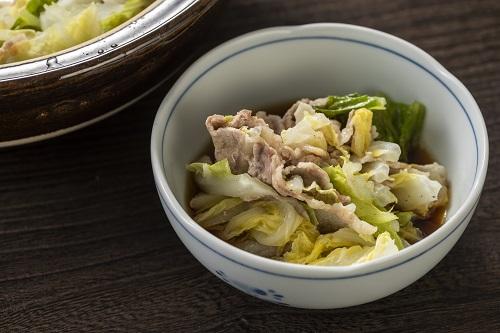 フライパンにサラダ油をひいて、白菜と豚肉を炒める。ある程度火が通ったら、合わせ調味料を加えて、しっかりと煮ていく。最後に水溶き片栗粉を入れて、トロみがついたら完成。