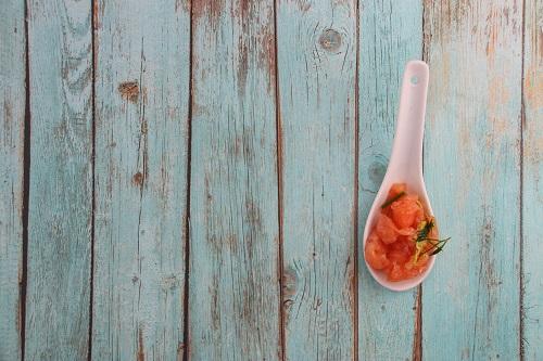 塩辛というとしょっぱいイメージが強いかもしれないが、サーモン塩辛は優しい塩加減で子どもでも食べやすい。糀独特の旨みとハラスの濃厚な風味がごはんのすすむ美味しさだと評判である。ごはんにのせる、お茶漬けにするといったシンプルな食べ方を楽しもう。塩気が足りないという場合は、刺身のようにしょうゆをつけて食べてもよい。もちろん、つまみとしても最高だ。