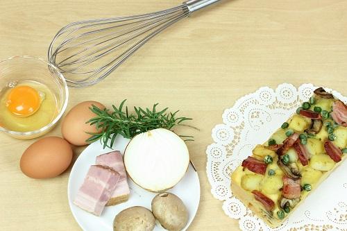 鶏肉や魚介類、玉ねぎやパプリカ、ほうれん草など生の具材を入れる場合には、フライパンで炒めて味付けをしてから生地に混ぜる必要がある。しかし、ミックスベジタブルなどの冷凍野菜やチーズであれば包丁やまな板も使うことなく、生地にそのまま混ぜて塩コショウをするだけで焼き上げることができるため簡単に作ることができる。