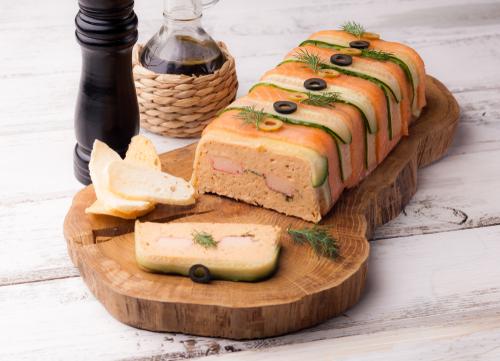 また、惣菜売り場でもSurimiを使ったメニューは豊富だ。とくに冷製の前菜として食べられることが圧倒的に多く、野菜とともにテリーヌやサラダなどの具として使われている。家庭料理にも取り入れやすく、サラダはもちろん、Surimiとアボカドを使ってムース風の前菜にしたり、キッシュやグラタンなどに入れたりして食べられているようだ。