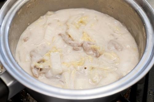 クリーム煮といっても、生クリームが必須なわけではない。鶏ガラなどのスープで白菜やほかの具材を煮込み、仕上げに牛乳と水溶き片栗粉を加えて混ぜるだけで完成する。白菜の甘みをスープや具材の旨みと一緒に味わえるうえ、身体も温まる嬉しい料理なのだ。