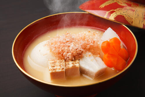 白味噌を使った味噌汁などは日常的に作るが、ダイコンをわざわざ亀甲型に切るなどの手間のかかった準備を行うのは、やはり正月限定である。