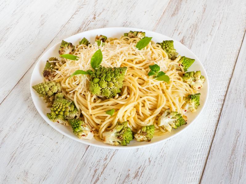 パスタの具材にロマネスコを使うと美味しい。オリーブオイルに切ったにんにくを入れて加熱し、香りを移す。そこにロマネスコやほかの食材を入れ、炒めればよい。あとは茹でたパスタと絡めれば完成だ。なお、パスタと一緒にロマネスコを茹で、オイルと絡めるだけでも美味しい。好みに応じて作り方を選ぼう。