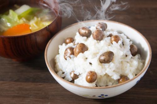 むかごとごはんとは実に合う食材だ。むかごごはんの作り方は、米2合をとぎ、炊飯器に米と酒、醤油を加えたら通常の目盛りまで水を入れる。そこへ昆布とキレイに洗ったむかごをのせて炊けば完成だ。栗ごはんに似た味わいを楽しめるだろう。