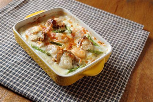 寒い季節にとくに美味しく感じるグラタン。ホタテとアスパラはもちろん、グラタンの食材としても一役買ってくれる。さらにお腹を満たすためにモッツァレラチーズも使用して豪華なグラタンを作ってみよう。