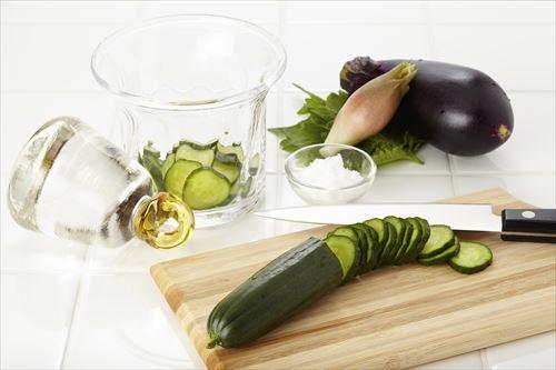きゅうりと白だしを用意したら、きゅうりの端を切って塩もみをし、サッと洗い流しておく。きゅうりを斜め切りにして保存袋に入れ、白だしを加えてもみ込んだら空気を抜いて袋を閉じ、冷蔵庫で冷やせば完成だ。一本漬けにしたい場合は、きゅうりを切らずに漬けるといいだろう。