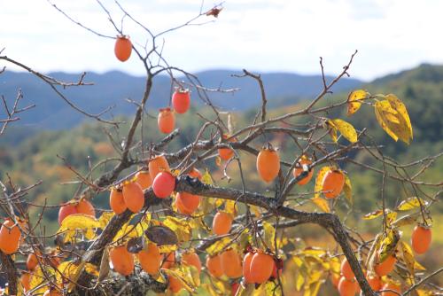 柿の実が大きくなってきたら、さらに「摘果」といって、果実を間引き、一つひとつの柿の実を太らせるようにする。10月中旬~11月中旬が収穫時期にあたるが、果実の色合いをよく見て、熟れたものから収穫していこう。