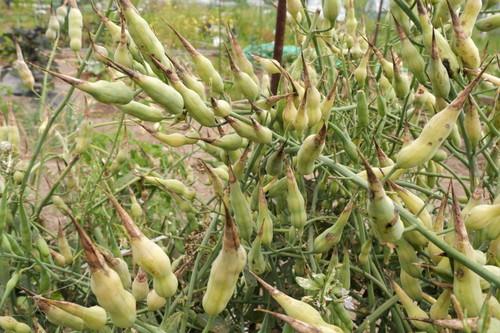 なお、さや大根用の種を使うと、根はあまり育たない。食用にも向かないので、さやだけを収穫すると割りきろう。