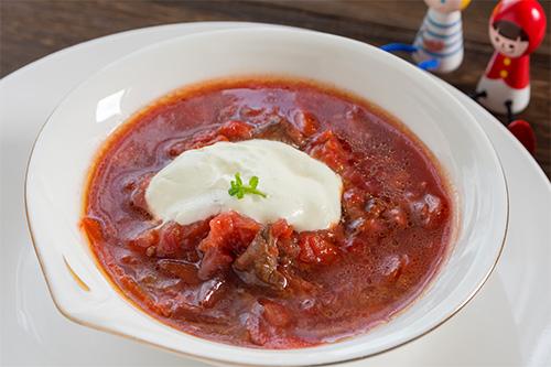 ボルシチは、世界三大スープのひとつで、ロシアの代表的な料理である。ボルシチには、鮮やかな赤色をしたビーツをはじめ、身体を温める食材が多数使われていて、ボルシチを食べると身体を芯から温めることができるようだ。