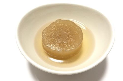 生のホタテや缶詰だけではなく干した貝柱も大根と煮るとよい味を出す。貝柱は一晩ほど水につけて戻し、大根を煮るときに調味料と戻した汁も一緒に加えるのである。生姜をきかせればつまみにも向く煮物となる。