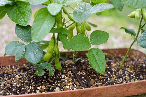 枝豆は栽培しやすい野菜で、栽培はプランターでも可能だ。温かい地域は3~5月下旬、寒い地域は5~6月が種まきの適期である。豆類は連作障害を起こしやすいため、過去にマメ科の植物を育てた土ではない清潔な土を使おう。土はけのよいプランターに土を入れ、20cm間隔で1ケ所に3~4粒ずつ種をまいてく。