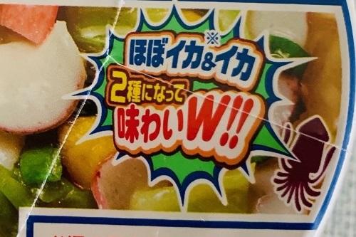 カップヌードルの具材の味付け豚ミンチは一部の人からは謎肉と呼ばれ愛されている。今回リニューアルされたシーフードヌードルにも謎肉に類するものが入っており、イカのような味わいや食感を再現している。これがイカ風味かまぼこである「ほぼイカ」である。これまでのイカの具材と新しい「ほぼイカ」の具材の2種類が組み合わせられており、新しい味を楽しめる。