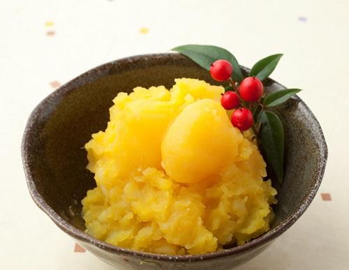 栗きんとんは大きく分けて2種類あり、1つは最初に紹介したおせちに入ってるもの。もう1つは、岐阜県などを中心に食べられている和菓子の栗きんとんだ。和菓子の栗きんとんは栗と砂糖のみを使って作られているものが多く、店によって1個あたりのカロリーも異なる。