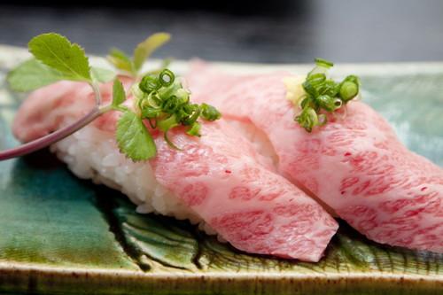 肉寿司とは、文字通り、肉をネタにした寿司のこと。元来、寿司ネタは、まぐろやサーモン、海老など魚介類が主流であるが、寿司が海外進出を果たした際に、外国人に好まれるように、肉を寿司ネタとして組み合わせたのが肉寿司だといわれている。