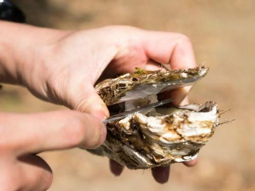 牡蠣は種類によって殻の硬さも違う。真牡蠣の場合は、殻をキッチンばさみで切ることができるが、岩牡蠣の場合は硬く、ペンチや金槌を使って殻を少し割ると剥きやすくなる。剥く前に、キッチンばさみで殻が切れない場合は、ペンチや金槌を使って、殻を割りその隙間からナイフなどを入れると簡単に剥くことができる。