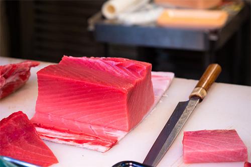 マグロは店頭に並ぶまでにいくつもの解体の工程を経ている。ここではブロックと呼ばれるマグロの塊から柵取りする方法を紹介する。ブロックとは背骨部分を直角に輪切りにして切り分けたものの呼び方だ。では、マグロの柵取りをする手順を解説しよう。