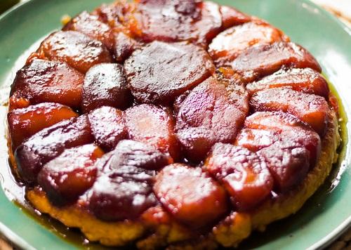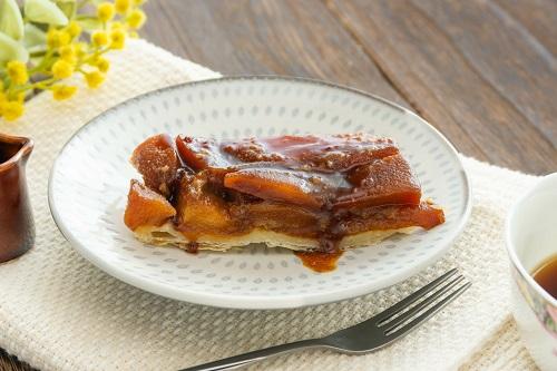 タルトタタンを家庭で手作りする際の主な材料は、りんごとグラニュー糖、無塩バターに冷凍パイシートなど。水とグラニュー糖、無塩バターで煮詰めたりんごをふんだんに敷き詰めて焼き、上に生地を被せてさらに焼いて作る。焼けたらひっくり返して完成だ。砂糖がキャラメルのようにりんごにしみており、香ばしさも一緒に味わうことができる。フランスでは、タルトタタンはりんごで作られるお菓子の代名詞といっても過言ではない存在だ。