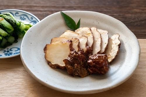 作り方・・・菊芋は一口大に切り水にさらしておく。鍋にサラダ油をひいて、菊芋と豚バラ肉を炒める。出汁を入れて煮ていき、沸騰したら醤油とみりんを加えて、味がなじんだら完成となる。煮物なので、菊芋をしっかりと水にさらしてアク抜きをしておく必要がある。