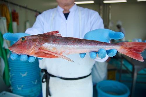 ほうぼうは、大きなヒレをもち海底を這うように移動するユニークな魚だ。ヒレで海底を「方々」歩くこと、または水揚げしたときに浮袋を震わせ「ボウボウ」と鳴くことから名付けられたといわれる。日本では北海道以南に棲み、福島県相馬市、茨城県ひたちなか市、千葉県銚子市、静岡県浜松市舞阪、愛知県蒲郡市三谷などで水揚げされている。ほうぼうはヒラメやカニなどとともに海底にいるので、底引き網で一斉に漁獲するのが主流だ。例外的に三谷漁港では、魚の通り道に網を仕かける刺し網漁法で漁獲されることもある。