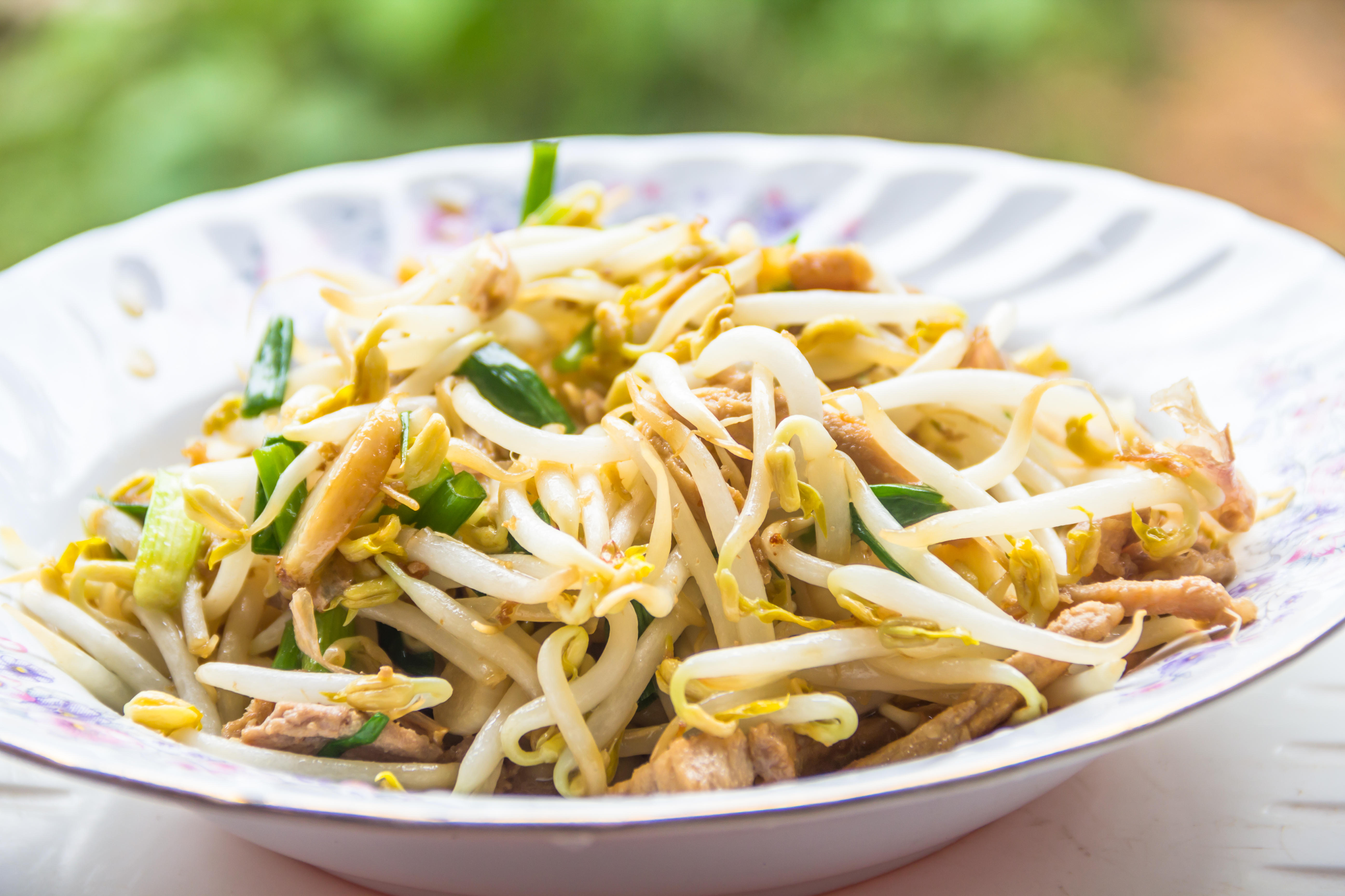 野菜炒めは時間差で具材を加えて炒めていく。一時に全ての材料を入れないことが家庭用コンロの火力でもシャキシャキした食感に作るコツである。火加減は終始強火でよい。キャベツやにんじんなど火が通りにくい具材を炒めたら、次にもやしとゆでた豚肉を加えて手早く炒め、合わせ調味料を絡めて仕上げる。最後に胡麻油少々を加えて香り立たせるとよい。