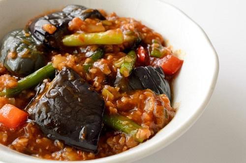 冷蔵庫に入っている焼き肉のタレを使って、合い挽き肉と野菜の炒め物が簡単にできる。焼き肉のタレの香りが合い挽き肉の臭みもカバーしてくれるため、もってこいの組み合わせとなる。ピーマンやなすを加えて炒めたおかずは、ごはんにのせて丼にしてもよい。