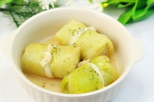 キャベツに火を通してしんなりさせ、あいだに合い挽き肉を挟んで煮込む方法もある。この場合は合い挽き肉が崩れやすいので、パン粉や牛乳を使用して硬めのたねを作るとよいだろう。コンソメスープで煮込んだり、トマトソースを加えたりアレンジが楽しめる。煮込むだけではなく耐熱容器に入れてオーブンで焼いても香ばしい。粉チーズをたっぷりとかけてラザニア気分で堪能できる。