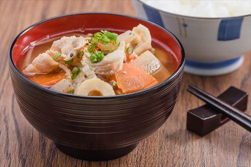 最後に献立のメインがししゃも料理のときに、合う汁物をいくつか紹介しよう。献立のメインがししゃも料理のときには具だくさんの豚汁が合う。ししゃも料理では摂れない豚肉やこんにゃく、れんこん、青ねぎ、豆腐のような食べ物を入れて作るとよい。