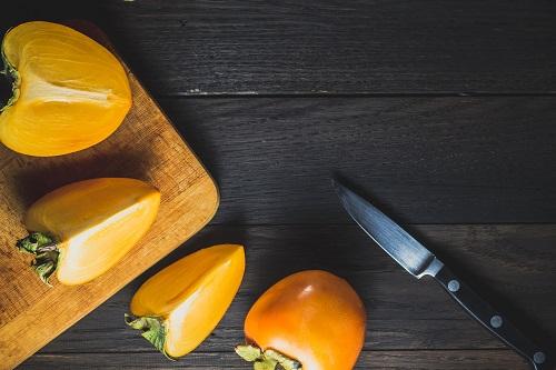 柿を切り分けてから剥く際は包丁やナイフ、まな板など一般的な物を用意するとよい。柿を切り分ける剥き方は以下の通りだ。