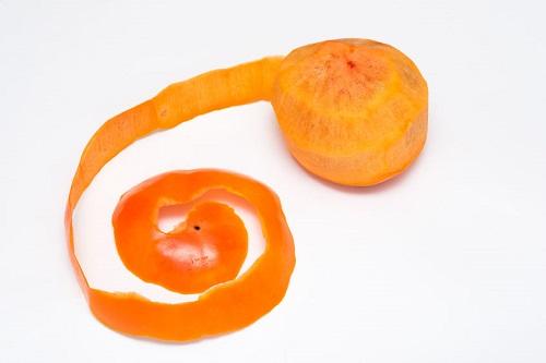 柿は果頂部や果皮に近い部分のほうが甘く、逆にヘタに近い部分は甘みが薄く苦味を感じるという傾向がある。そのため、柿の皮は厚く剥きすぎないようにすることが剥き方のポイント。柿を包丁へ送るように剥くとよい。柿を剥く方向は、ヘタ側からお尻側に向かうのがベストなので覚えておこう。