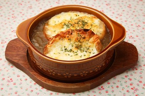オニオングラタンスープとは玉ねぎを炒めてブイヨンで煮込み、チーズをのせて焼く料理だ。専用のグラタンスープ皿で作ると本格的な見た目に仕上がるところが、オニオングラタンスープの魅力のひとつ。玉ねぎの甘みや旨みを堪能できるうえ、ボリュームたっぷりで一品で満足度が高いところも魅力といえるだろう。