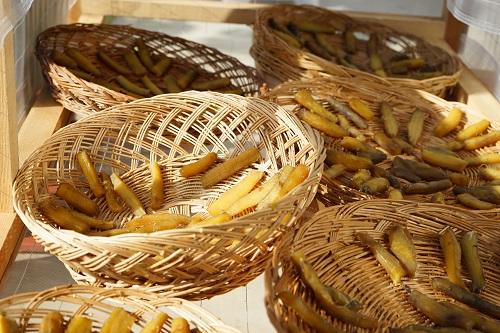 好みのさつまいもを選んで干し芋にする場合は、採れたてよりも熟成したものが向いている。天日干しや室内干しにする場合には、さつまいもを2時間弱蒸かして皮をむき、スライスして乾燥させるのである。いずれも風通しがよい場所を選び、かびないように注意しよう。